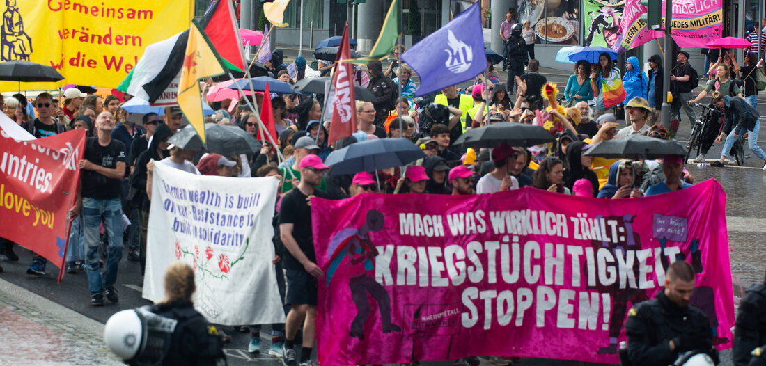 In Berlin wurde am Sonntag gegen eine Rüstungsfabrik von Rheinmetall demonstriert.